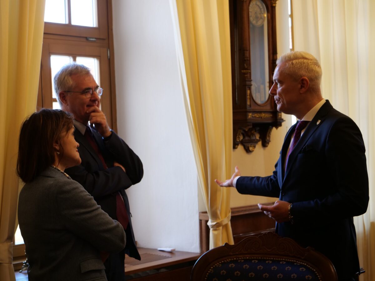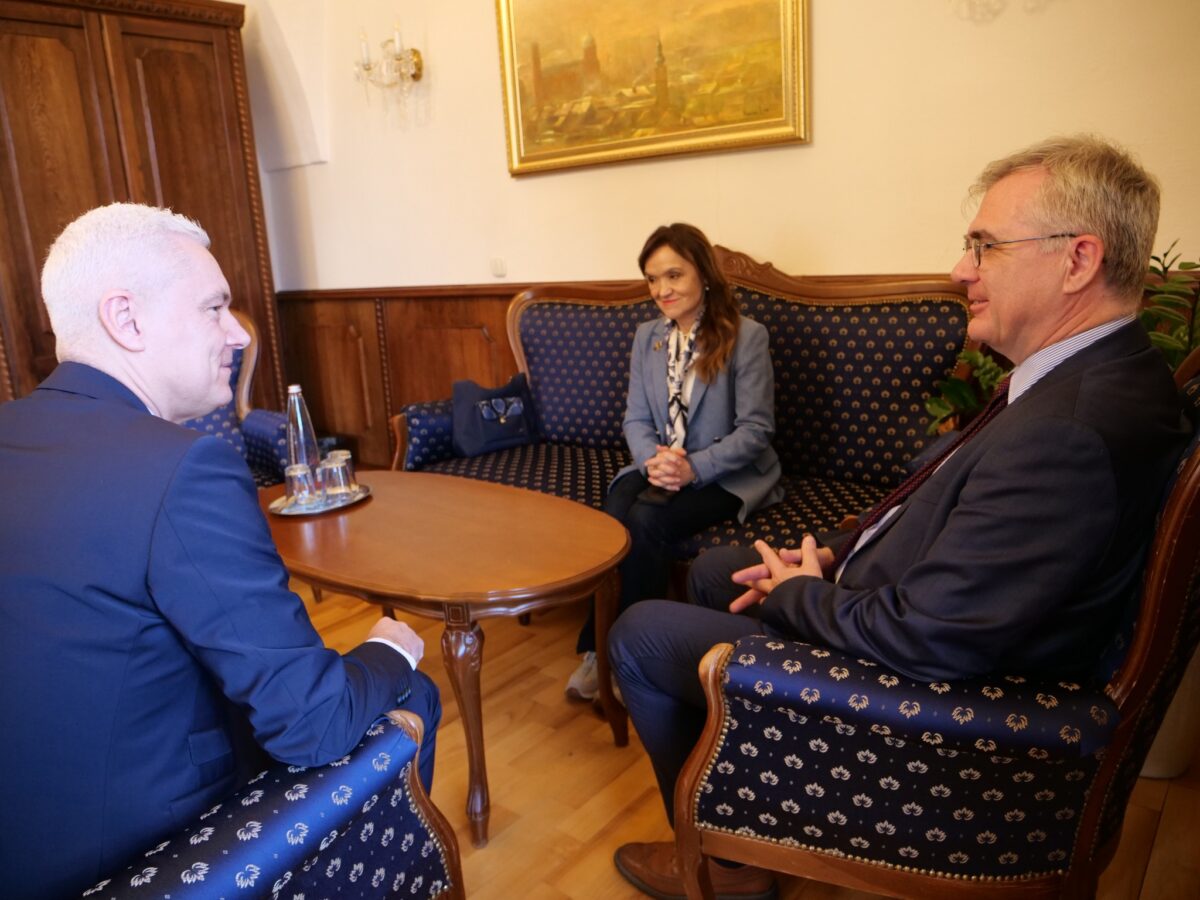 V priestoroch kežmarskej radnice privítal primátor mesta Ján Ferenčák chargé d’affaires a.i. Piotra Samereka, ktorý zastupuje Poľsko na Slovensku. Šéf diplomatickej misie sa spoločne s primátorom zhovárali o spolupráci našich dvoch krajín. Mesto Kežmarok sa aktívne zapája do cezhraničných vzťahov v projektoch či cestovnom ruchu.
