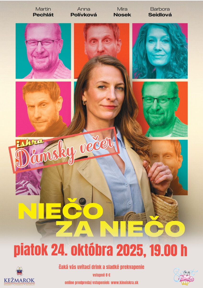 Dva manželské páry vyrazia na chatu užiť si voľný víkend, keď manželka položí svojmu mužovi jednu zásadnú otázku. Nič už potom nebude ako predtým. Ako kto zareaguje a odídu dvojice späť tak, ako prišli? Na to odpovie komédia Niečo za niečo.
