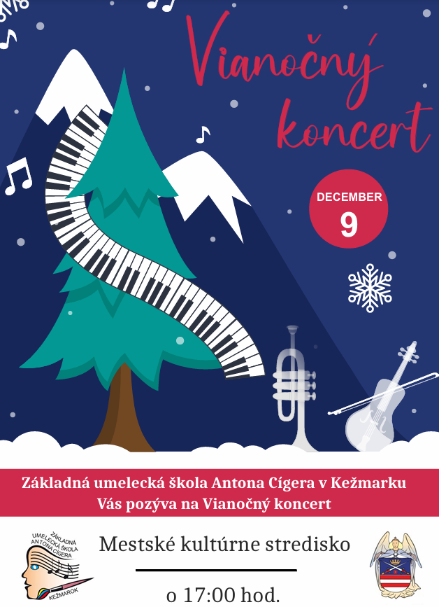 Mesto Kežmarok s radosťou pozýva širokú verejnosť na Vianočný koncert ZUŠ, ktorý patrí k najkrajším chvíľam nášho adventného obdobia. Každý rok sa na jednom pódiu stretne talent, nadšenie a oddanosť mladých umelcov, ktorí svojou hudbou a spevom dokážu vniesť do priestoru pokoj, nehu a skutočný zmysel Vianoc. V ich vystúpeniach je cítiť poctivá práca pedagógov, podpora rodín a najmä láska k umeniu, ktorá spája generácie. Vianočný koncert nie je len program – je to spoločné zastavenie sa, chvíľa ticha medzi ruchom dní a pripomenutie toho, čo má pre nás skutočnú hodnotu. Pozývame vás prežiť tento večer spolu s nami. Nech vám hudba našich žiakov prinesie pokoj do srdca, pripomenie detskú radosť a naplní vás teplom, ktoré k Vianociam neodmysliteľne patrí.